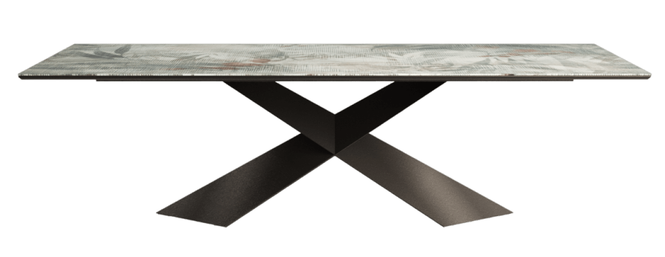 Премиальный обеденный стол по индивидуальным размерам. Не раскладной обеденный стол с керамической столешницей и стальными опорами. Сочетание культового подстолья и эксклюзивного рисунка столешницы делает каждую версию стола необыкновенным образцом современного дизайна